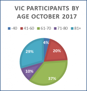 The IC’s experience in disability and independent living services, self-advocacy and consumer direction positions them to operate a successful VD‑HCBS program. The IC uniquely branded the program using language familiar to those who have served in the military—Veteran In Charge (VIC). As of October 2017, 71 veteran consumers, with ages ranging from 28 to 96 years old, were enrolled.
